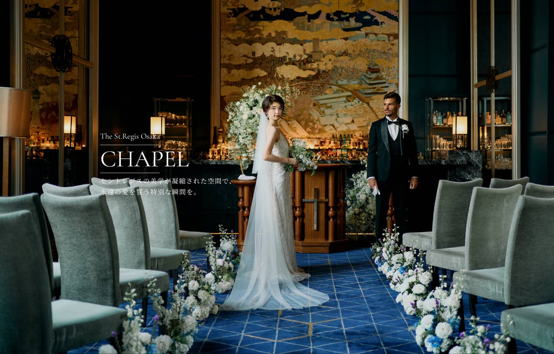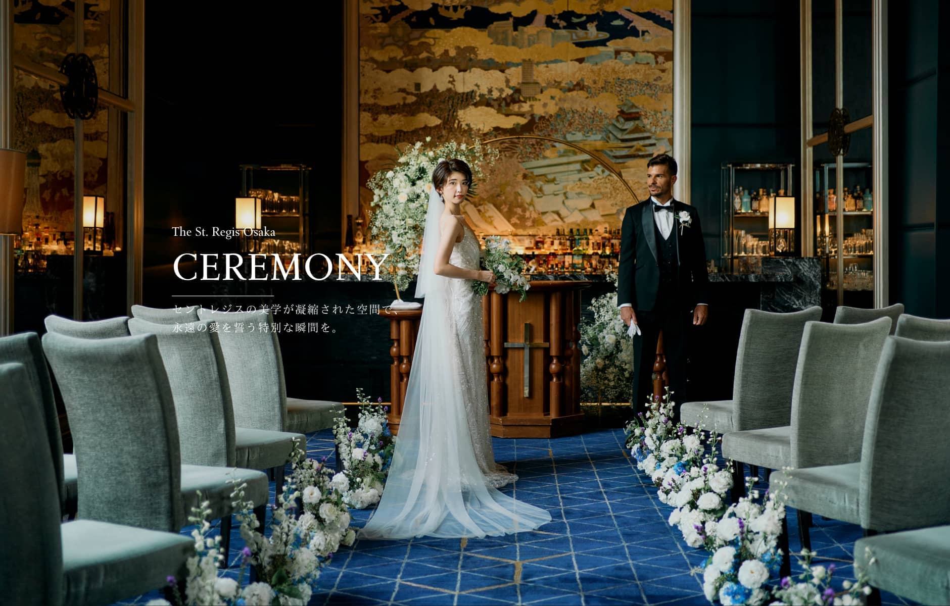 おふたりと大切なゲストだけのためにワンフロアを貸し切りにできるパーソナルな邸宅ウエディングがセント レジス ホテル 大阪の魅力のひとつ。